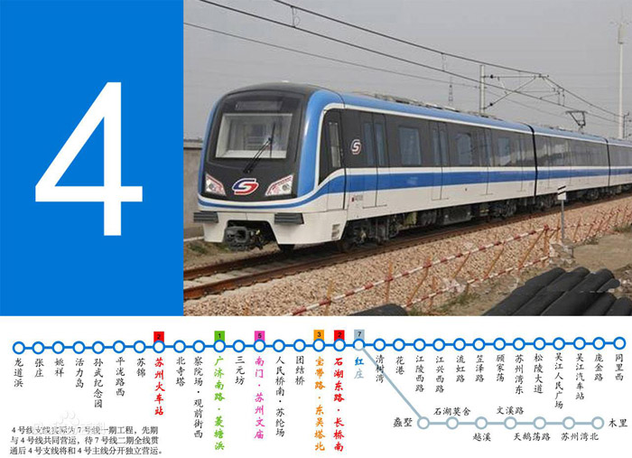 蘇州軌道交通4號線,南北走向,連接相城區、姑蘇區、吳中區和吳江區,是蘇州城市發(fā)展的一條骨干線路。...